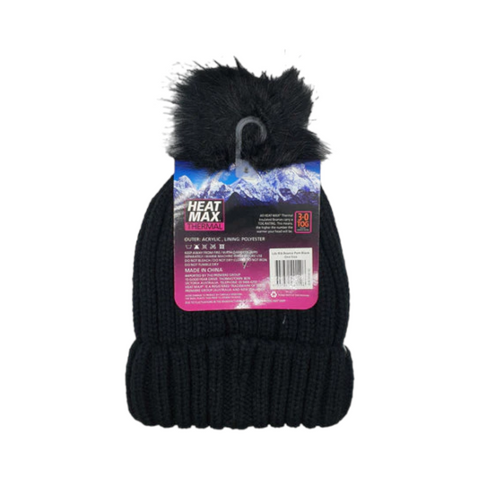Heat Max Thermal Ladies Knitted Beanie With Pom Pom - Black
